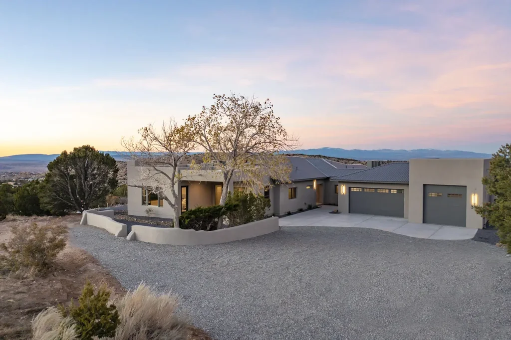 Top of the mountain! Custom home built by Enchanted Spaces, Placitas' premier custom home builder & featured in the 2025 Parade of Homes. Enchanted Spaces creates an amazing floor plan with a Scottsdale meets New Mexico design style. The builder's vision starts with capturing the best that Placitas has to offer-the views! This 1.8+ acre lot is simply the best view lot in Placitas & captures Sandia Mountains, Jemez mesas, Santa Fe, Cabazon, Rio Grande Valley & city light views. Home features 3 bedrooms with En Suite baths, office, 2 living areas, chef's kitchen, finished walkout basement bonus room & 3 car garage w/RV bay. Deluxe finishes include wood floors, cathedral ceilings, wood windows & adobe/frame walls. Multiple covered patios to enjoy mountain views & landscapes of New Mexico.